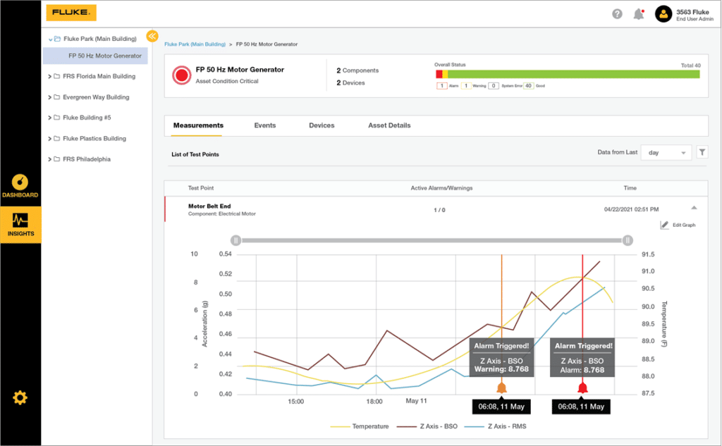 Fluke Reliability’s vibration sensors are simple to install and configure, and organizations can use our expert services. Once implemented, users can view data instantly in real-time via the application software to gain insights into machinery conditions.